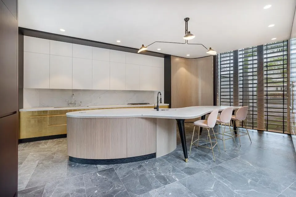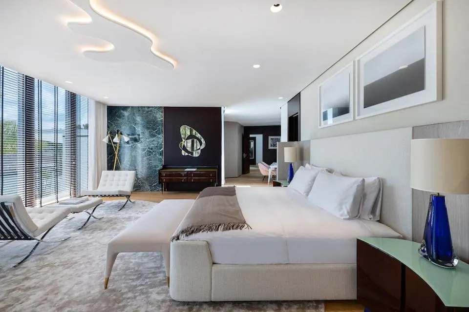 Achille Salvagni’s meticulous attention to detail is evident in every corner of the Miami mansion. The modern architecture seamlessly fuses with the historical character of 1950s Miami, creating a harmonious balance between past and present. Salvagni’s design expertise shines through in the sweeping bronze staircase, which serves as a captivating centerpiece, and the incorporation of 24-carat gold leaf detailing, adding an exquisite touch of opulence.
